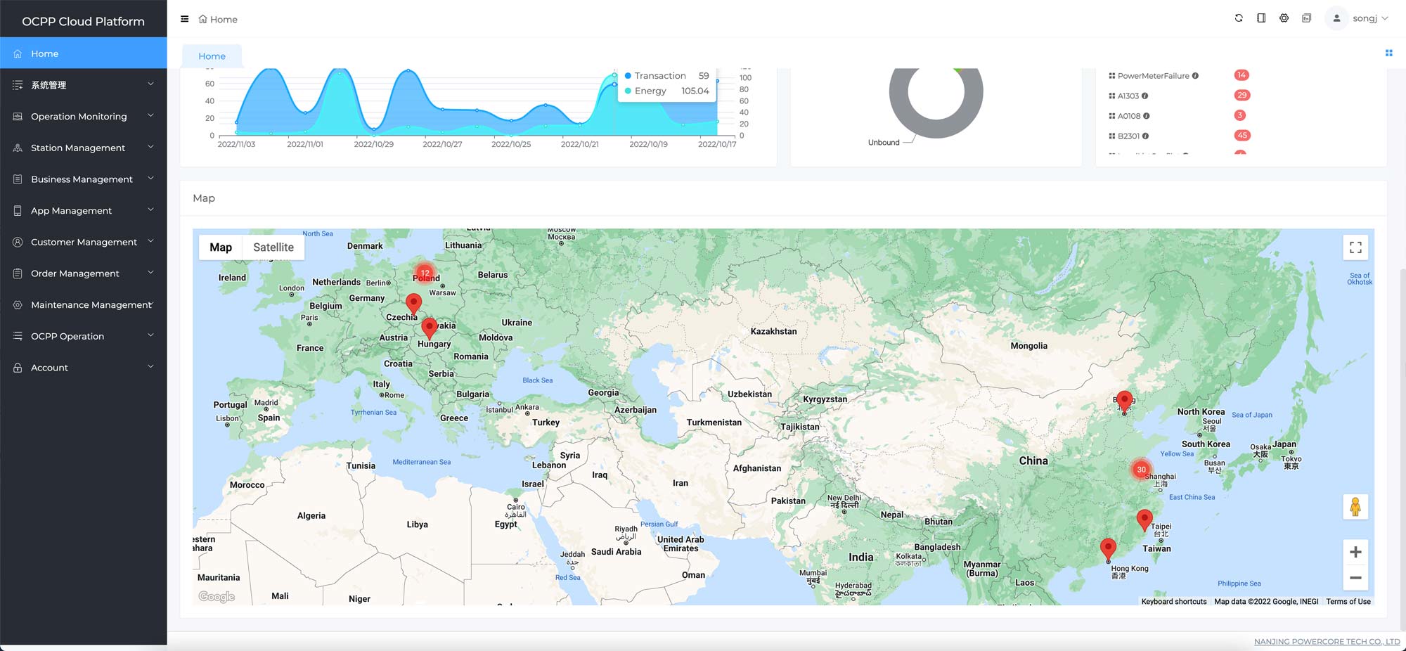 5.GIS: real-time display of all current charging pile positions, working information and other states; on the map.